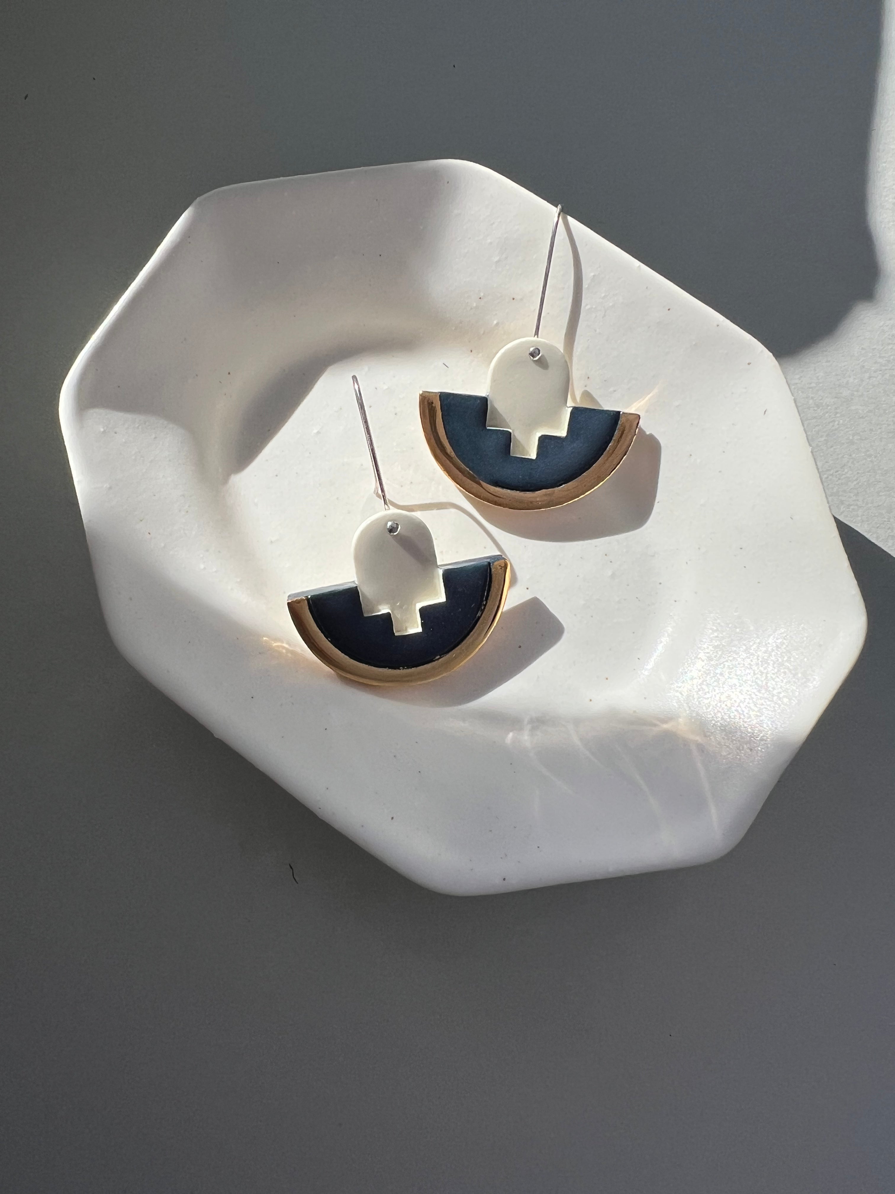 I reference Art Deco, Bauhaus and Modernism. I look at details in windows, door-knobs or even on cutlery. I am inspired by these flourishes once created by a craftsperson and carried through time to find my eye. I create pieces that mix my personality with the design language of the past and create jewellery that I want to wear everyday.