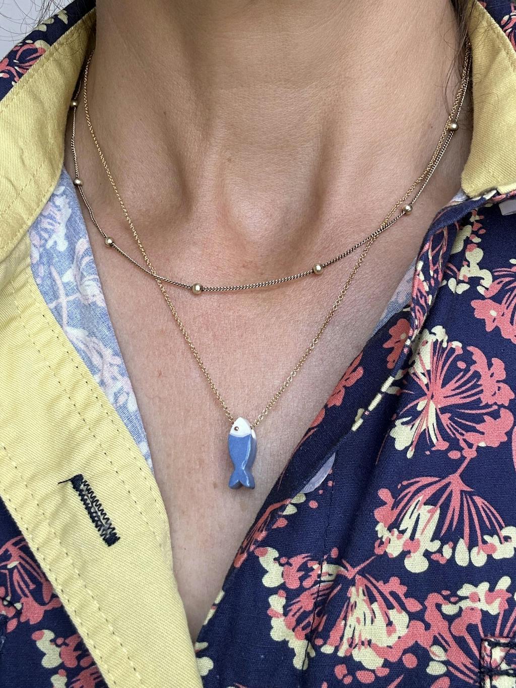 Lucia Finnigan I love my fish necklace. It is just perfect. So delicate, perfect size and a beautiful blue. I’ve had so many compliments already. Thanks Erin.